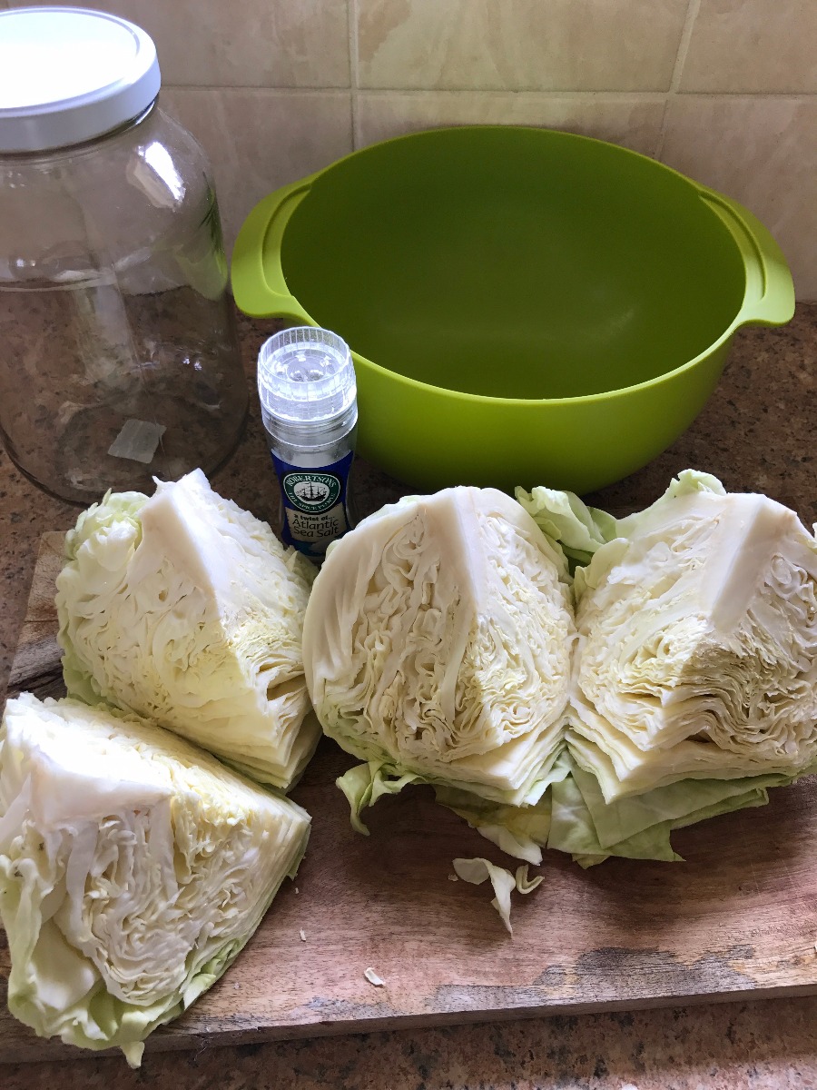 Depending on the amount you want to make - I had a large glass Mason jar and a whole head of cabbage sitting in the fridge so decided to make a big batch.